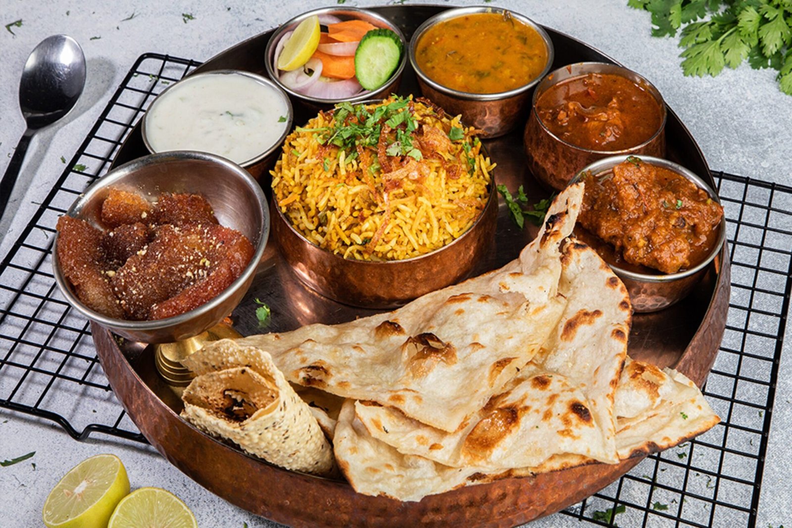 Choose from naan, roti, kulcha, and more.